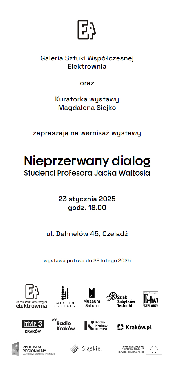 Nieprzerwany dialog. Studenci Profesora Jacka Waltosia. Galeria Sztuki Współczesnej ELEKTROWNIA w Czeladzi.